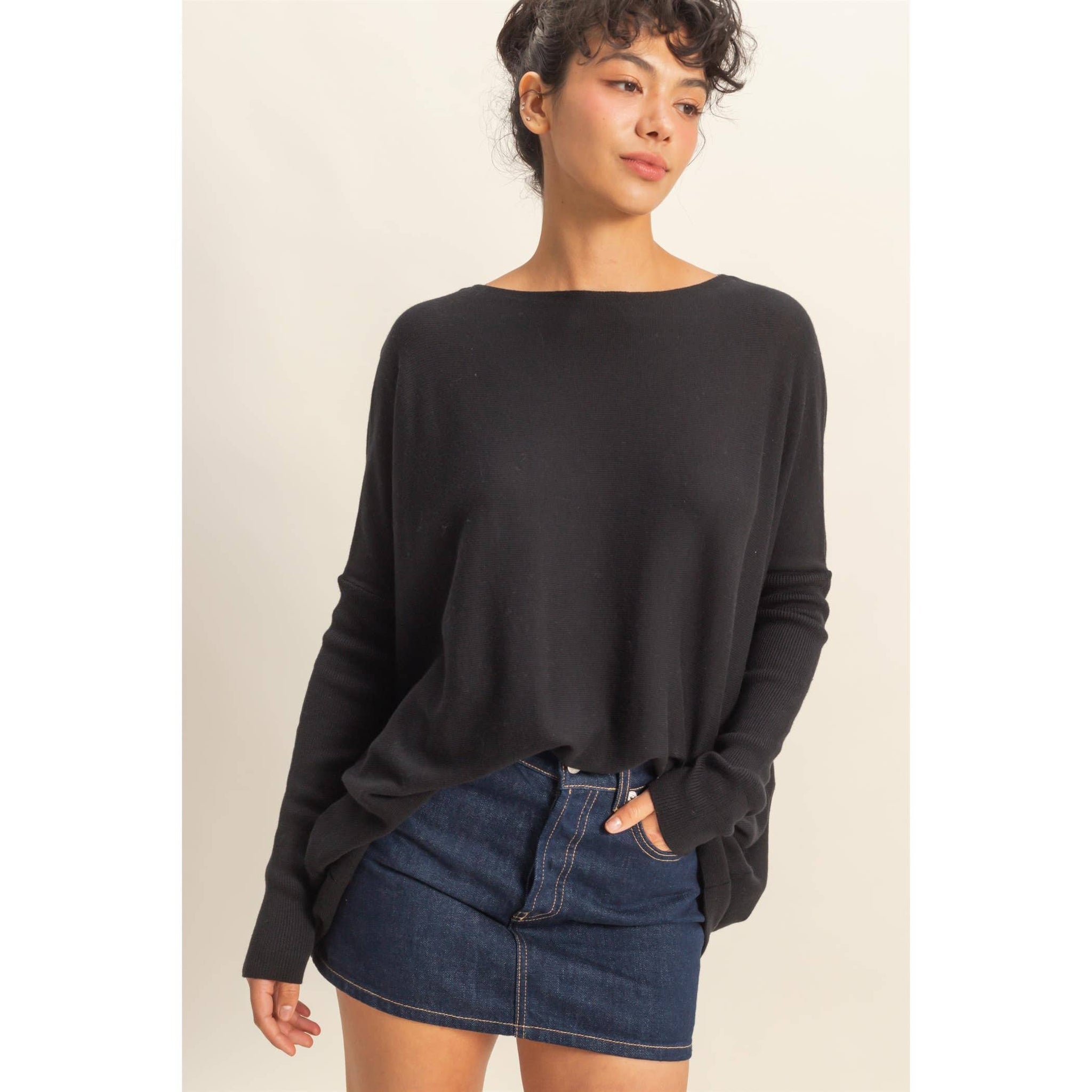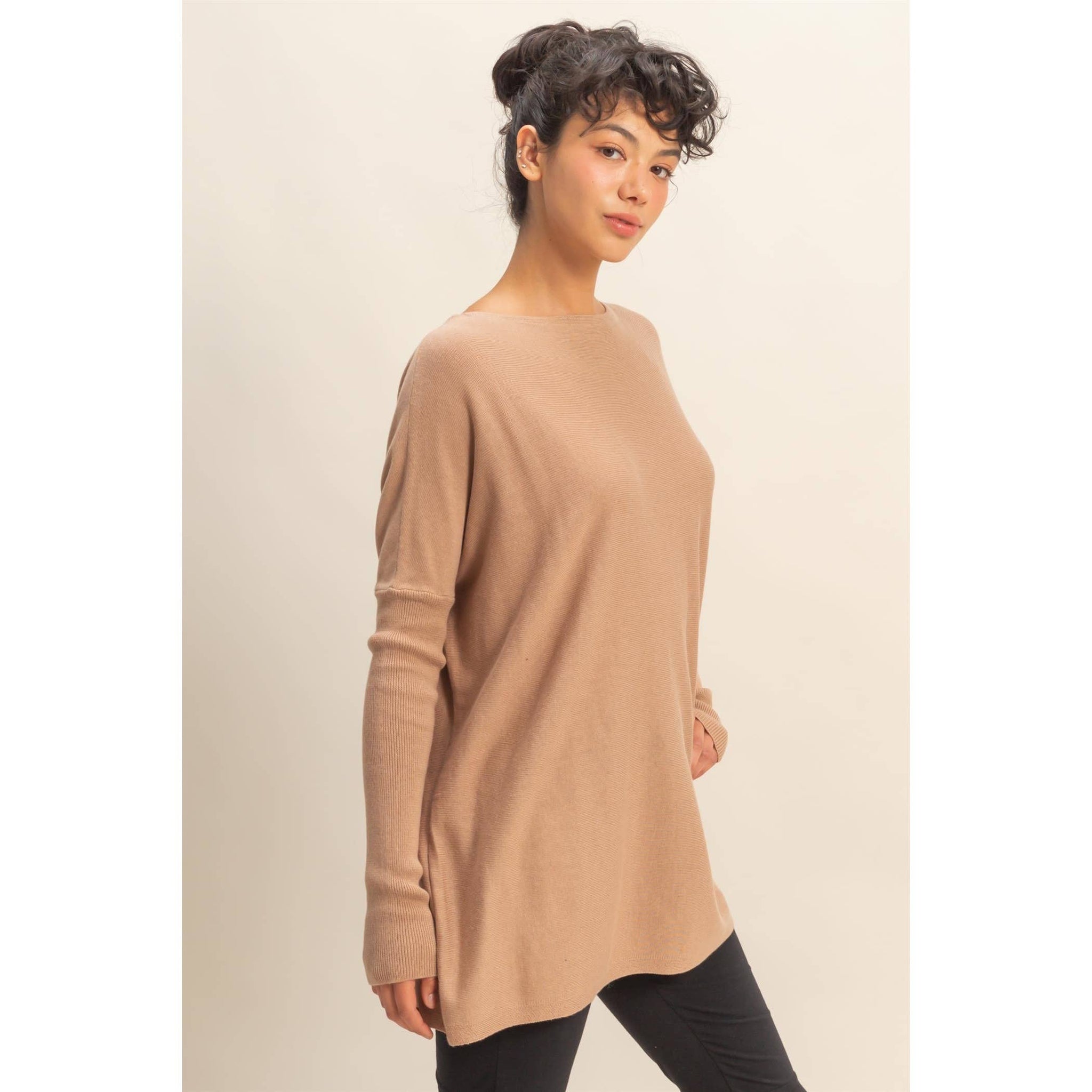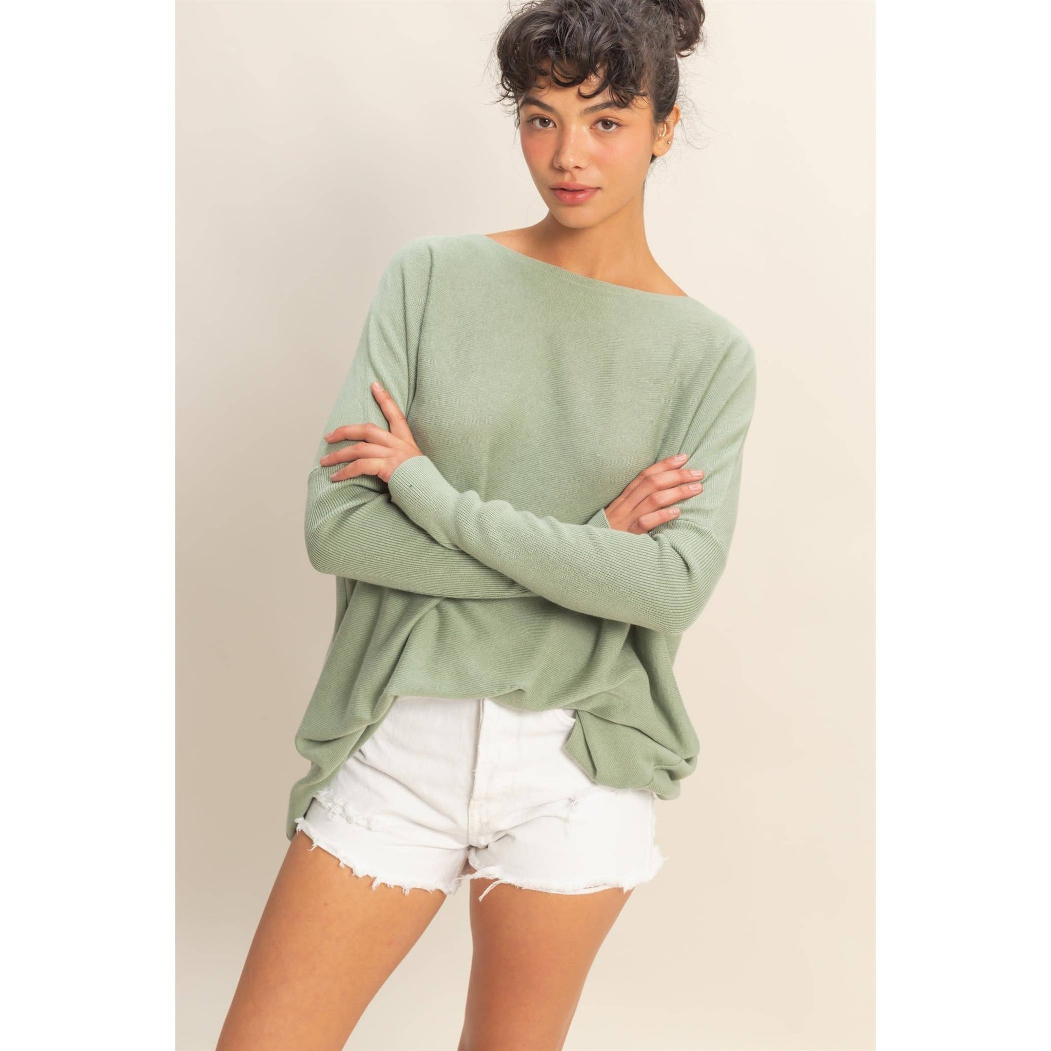 Boat Neck Batwing Sleeve Relaxed Sweater