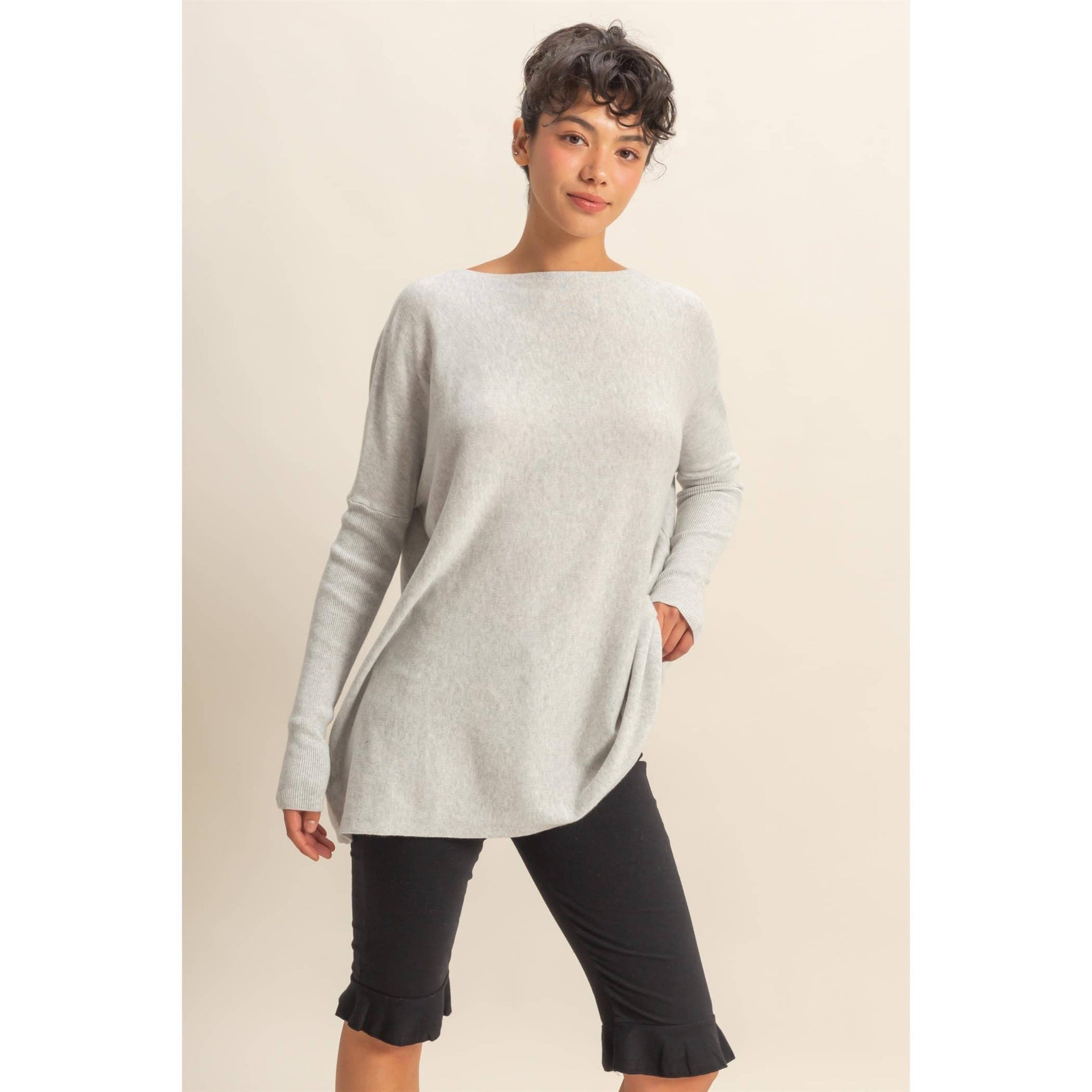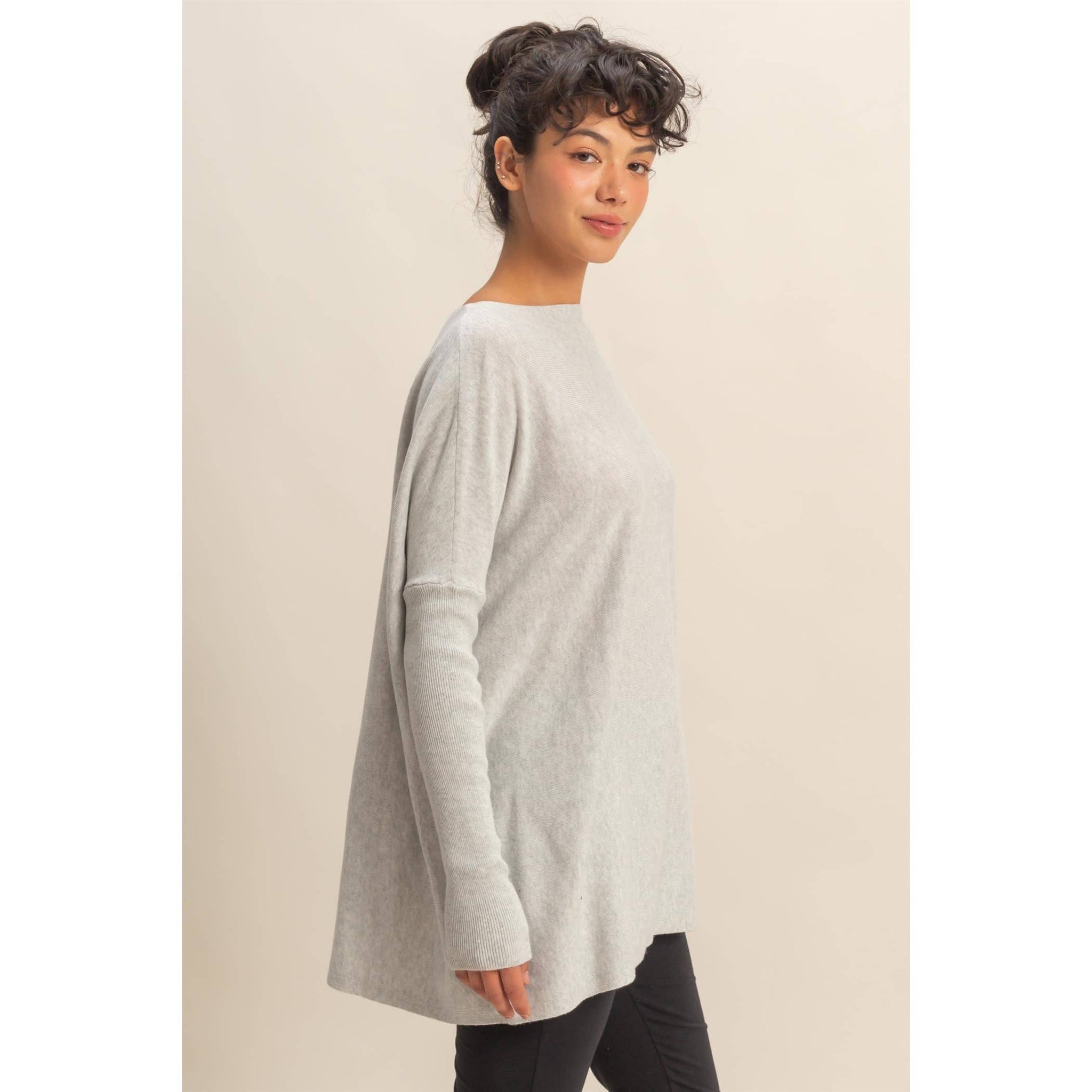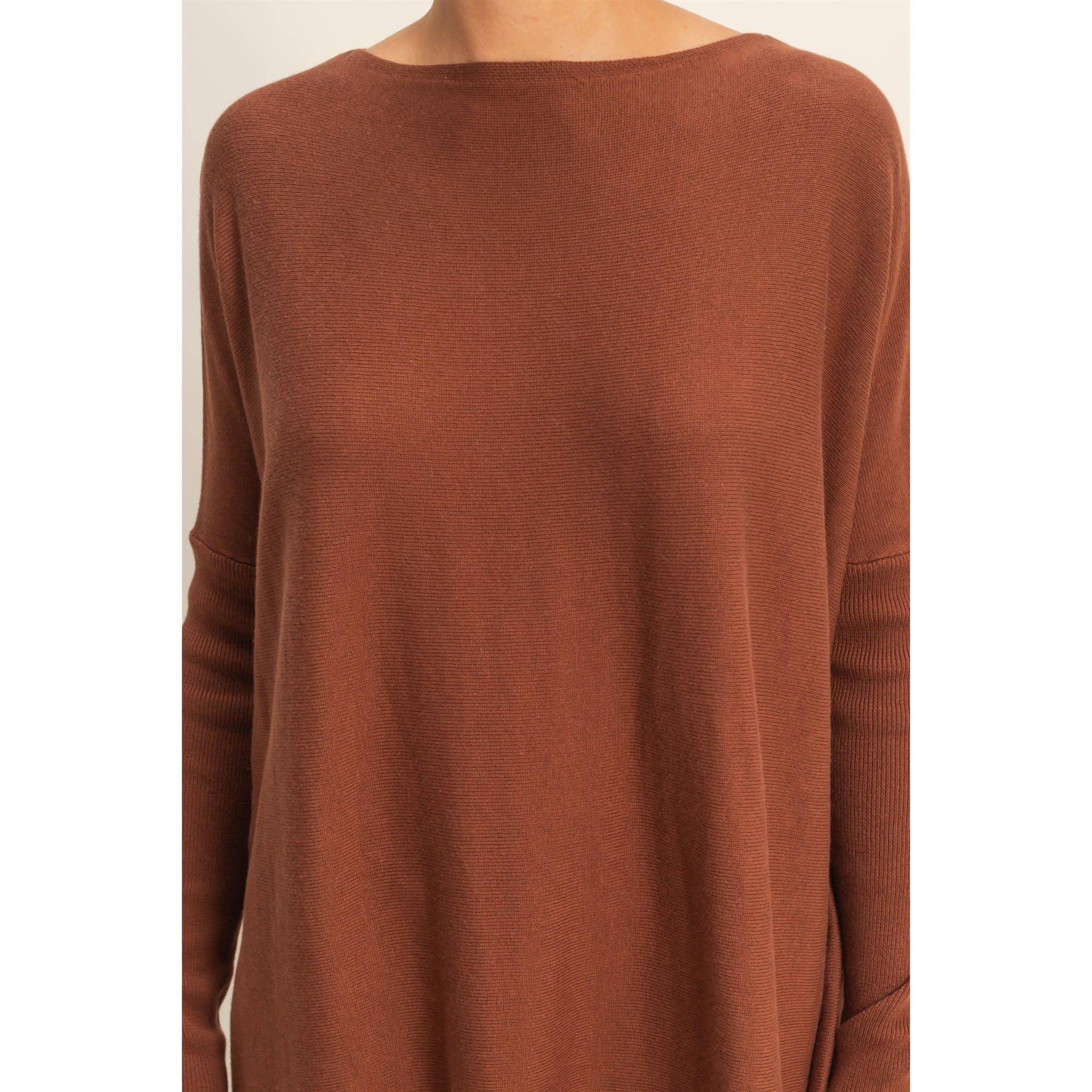 Boat Neck Batwing Sleeve Relaxed Sweater