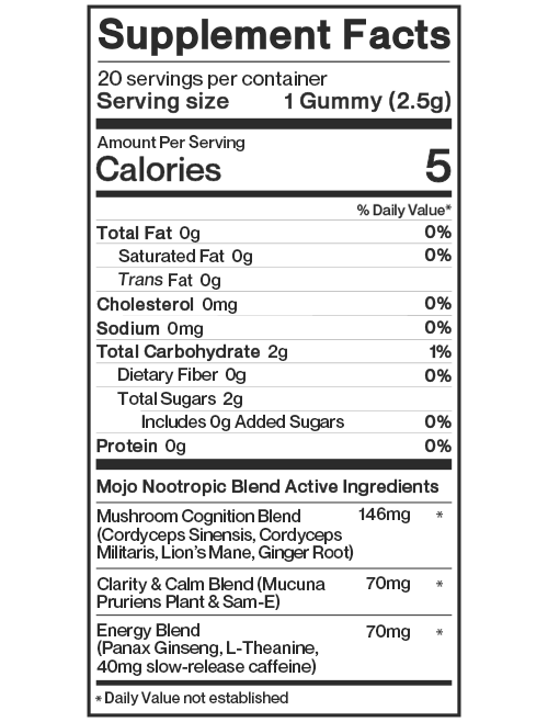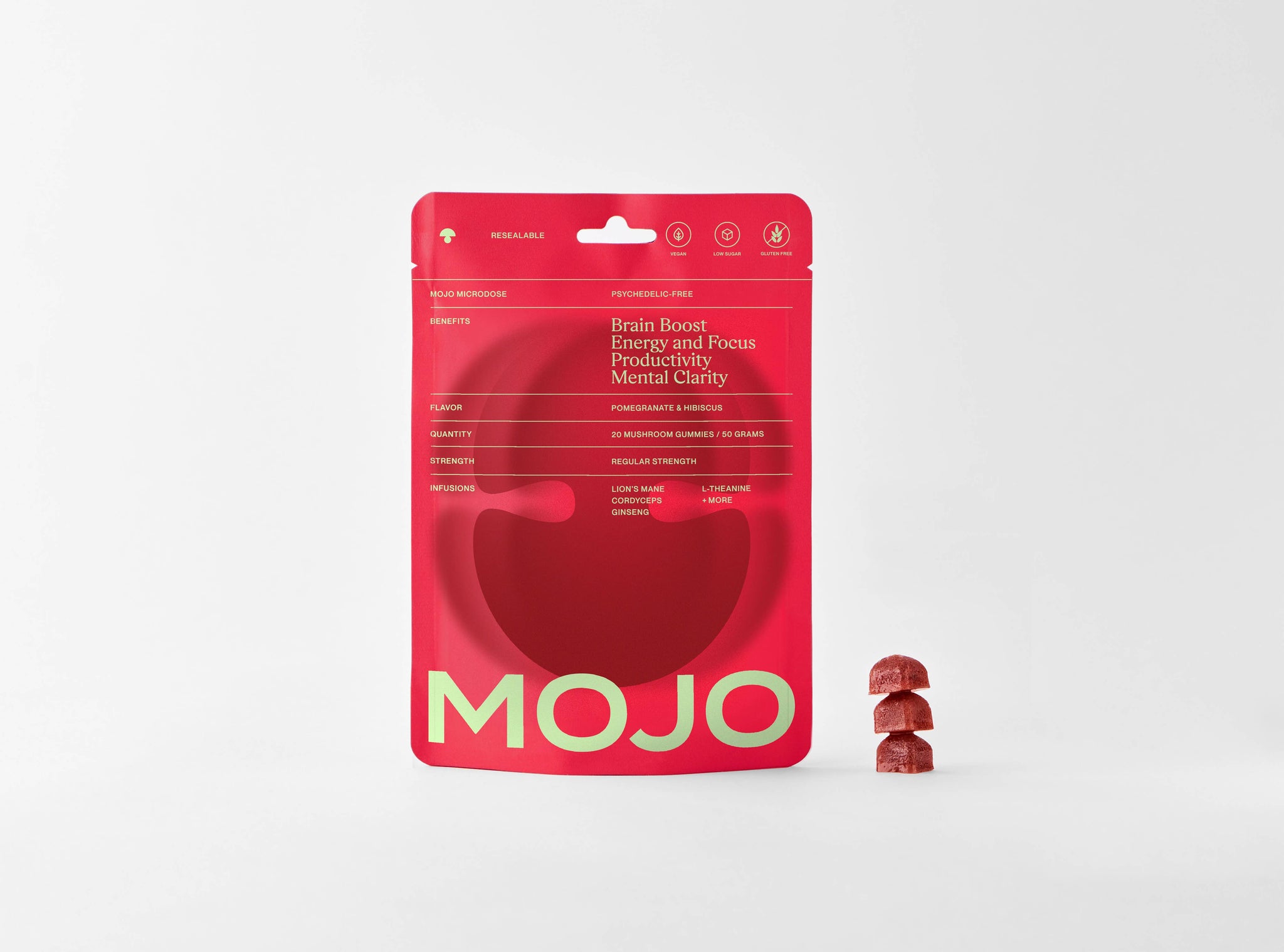 This complete gummy helps you become your best self. These award winning adaptogen & nootropic-based mushroom gummies help to sustain concentration, improve your mood, increase productivity, reduce brain fog and unlock your full potential. Mojo ingredients are vegan, cruelty-free, gluten-free, natural, and selected with precise intentionality to stack compounds in perfect harmony to achieve our signature microdose experience. Some of these highly valuable ingredients include Lion’s Mane, Ginseng, Cordyceps, Mucuna Pruriens. Mojo Pomegranate & Hibiscus energizes with a spark of tart pomegranate and inspires with floral hibiscus. This flavor is only available in the USA. Explore more at www.mojo.shop
