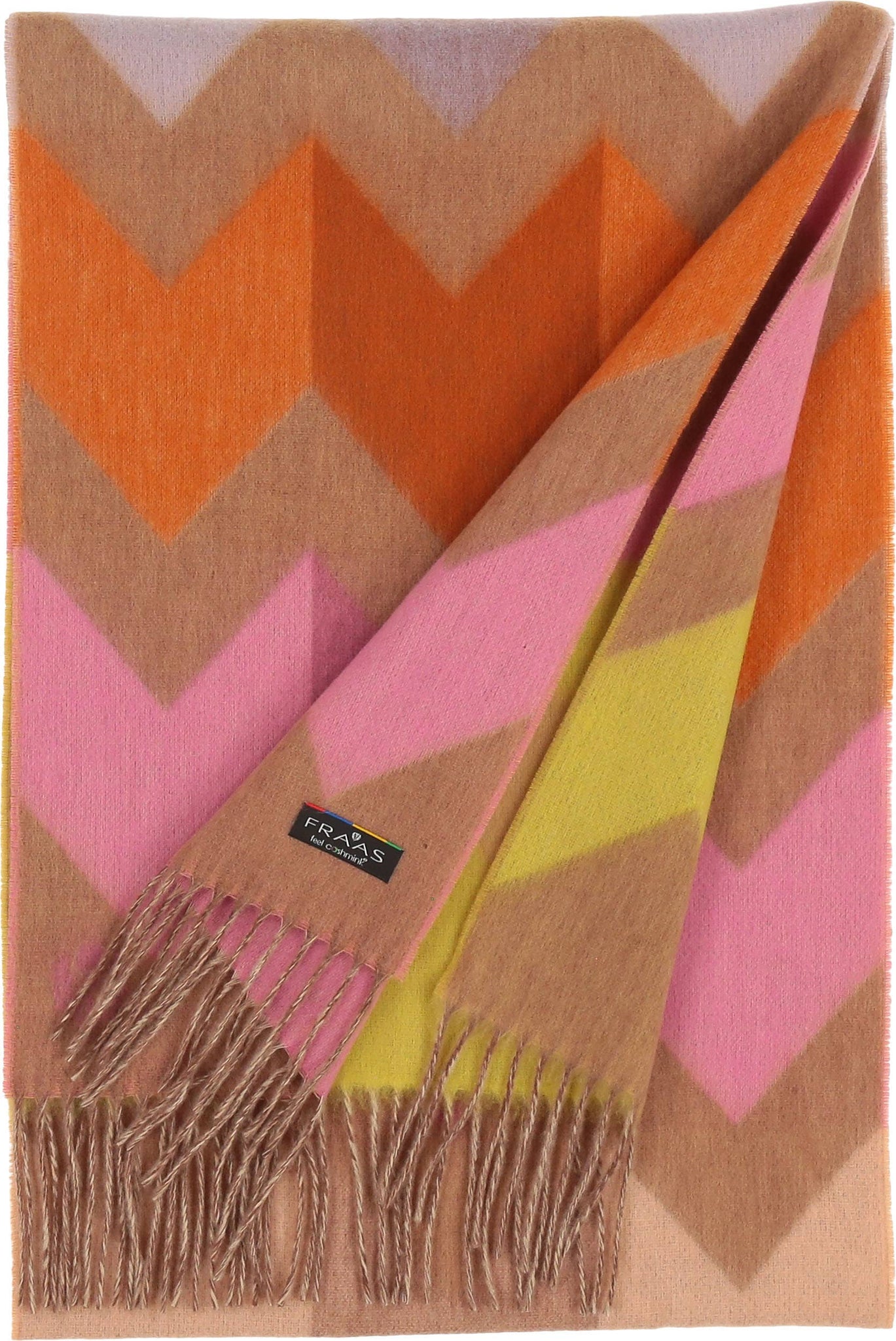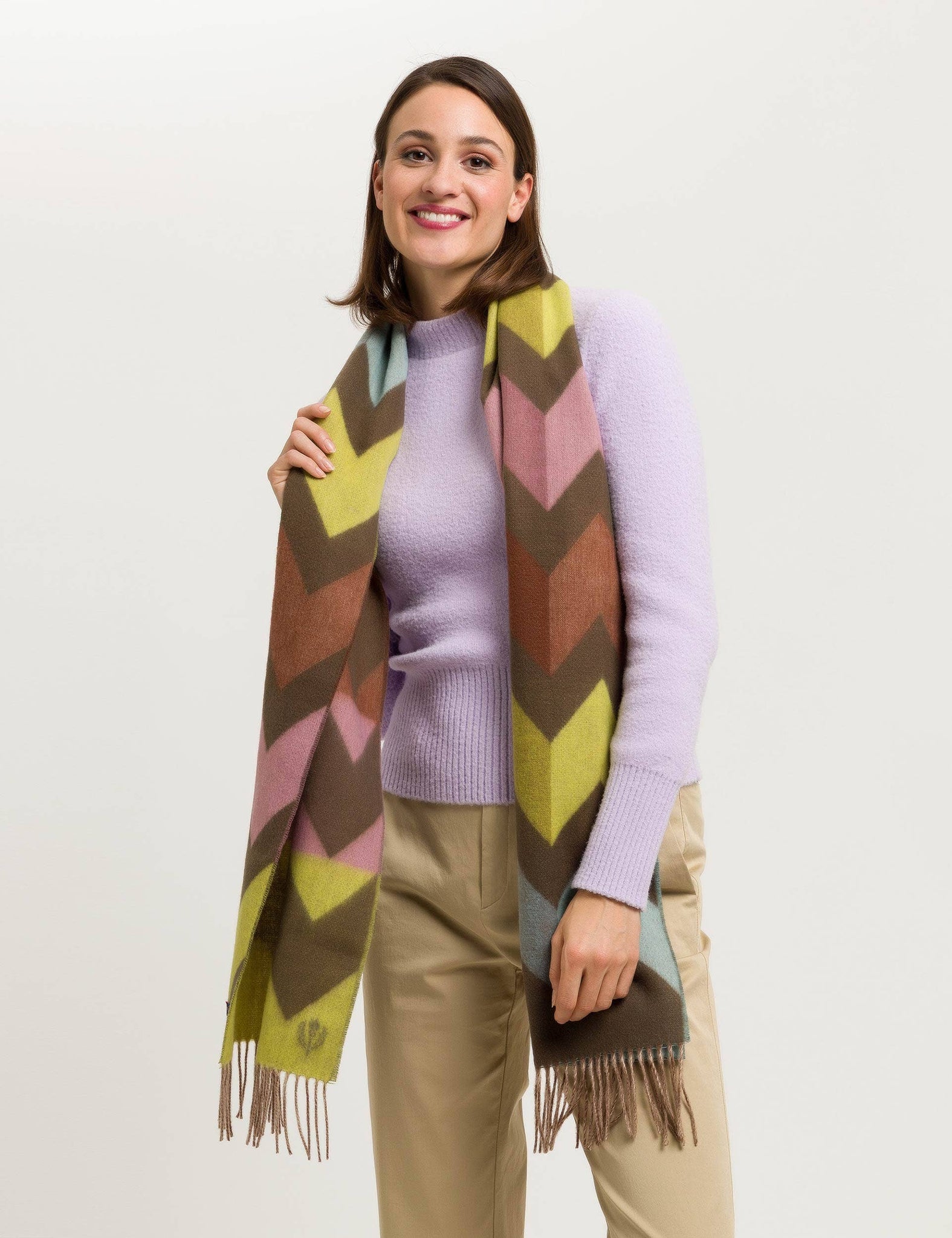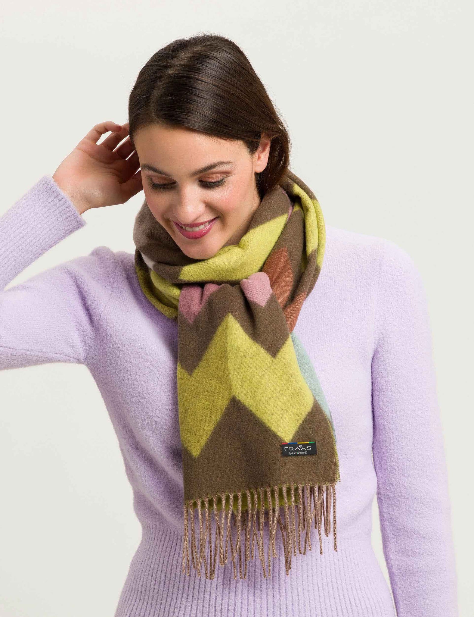 Environmentally Friendly, Fashionable, FRAAS! Try this cozy recycled polyester scarf as a casual loop around your neck, tucked in like an infinity-scarf, or just draped over your shoulders to show the pattern. Made in Germany, this is a winter accessory to update for your outdoor outfit with the bold color combinations and versatile geometric chevron pattern. The fibers woven in this scarf are reclaimed from recycled plastic bottles and brushed to perfection making it cozy, warm, and sustainable. As of Fall 2021, FRAAS is pledging to offset the small, yet unavoidable, emissions of all Sustainability Edition accessories through an international climate protection project with Climate Partner. Good for you. Good for the Planet!