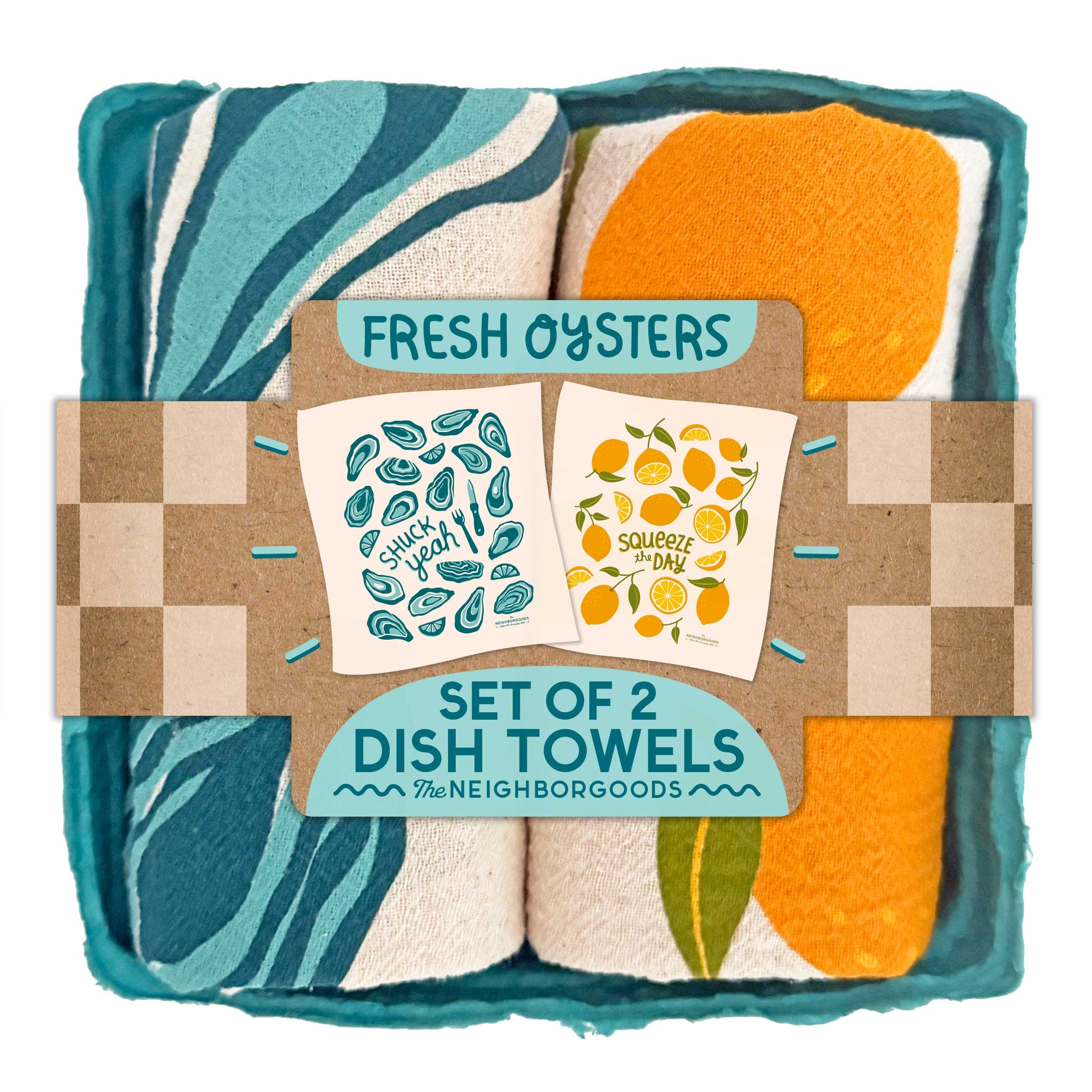 Our Fresh Oyster set includes 2 of our signature 100% cotton, unbleached dish towels: